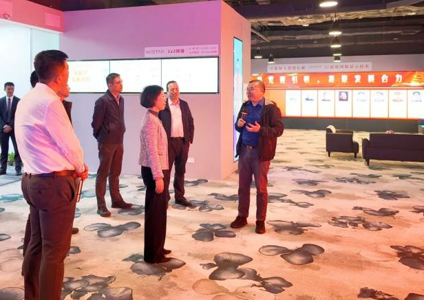 2月27日下午,宝安区政协副主席邓少玲,在航城街道盛威主任、深圳机场集团副总经理杨海斌、深圳机场航空城公司副总经理鱼清水陪同下到瑞致达指导工作,对瑞致达公司在视网膜巨幕领域取得的技术成果给予高度赞赏,并对瑞致达在博物馆超高清展示、融媒体中心“新闻进社区”方案给予肯定。深圳机场集团领导表示,“新闻进社区”方案要第一个落地。